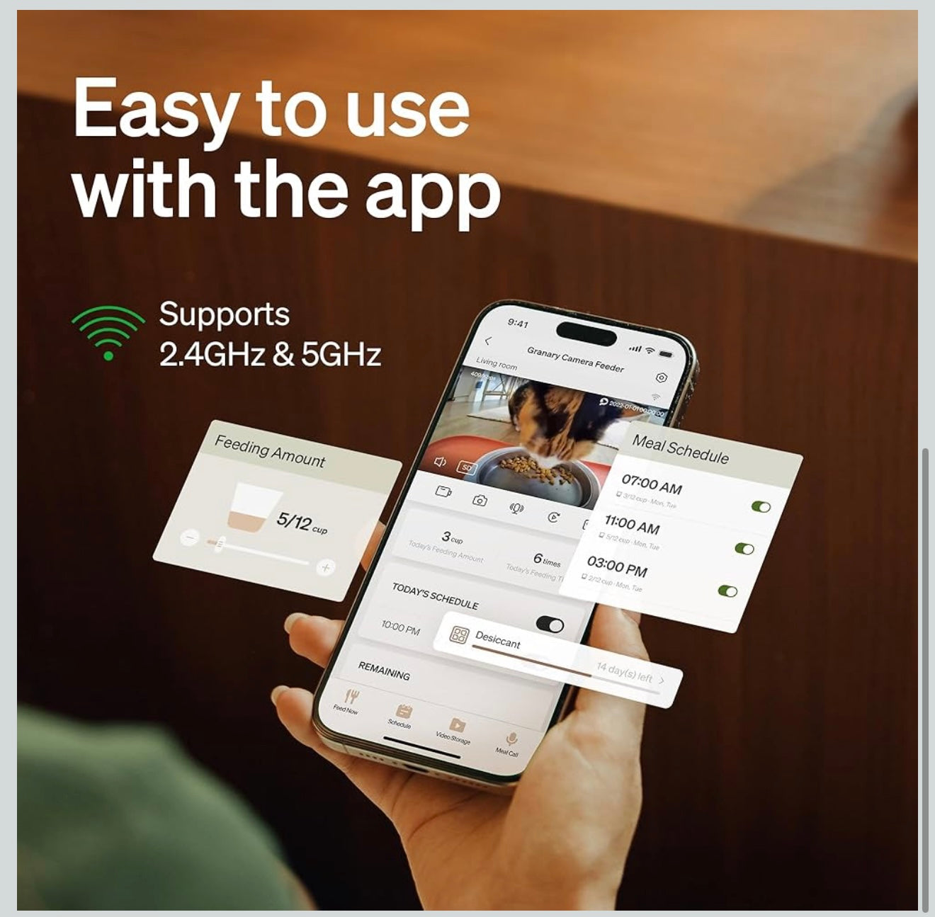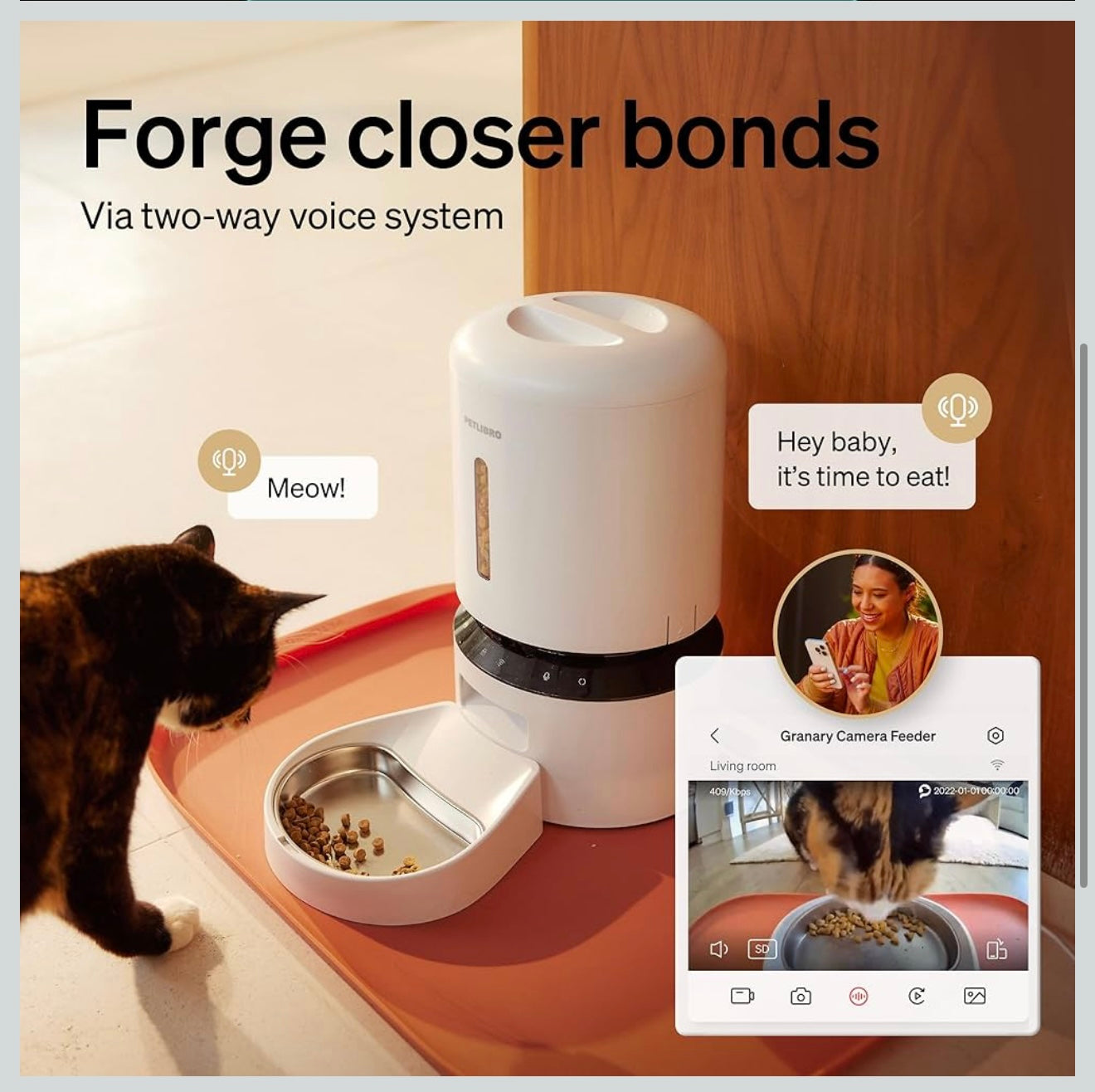 Automatic Cat Feeder with Camera, 1080P HD Video with Night Vision, 5G WiFi Pet Feeder with 2-Way Audio, Low Food & Blockage Sensor, Motion & Sound Alerts for Cat & Dog Single Tray