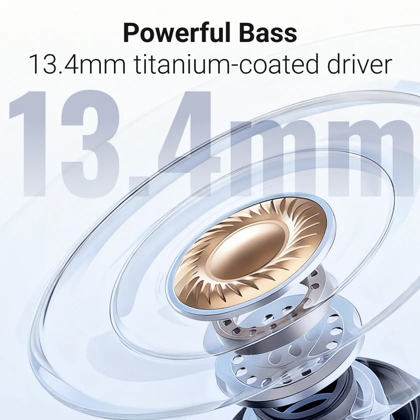 Immersive Sound, Deep Bass: Enjoy crystal-clear audio with rich, punchy bass thanks to our 13.4mm*13.4mm titanium-coated driver and enhanced bass technology.